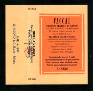 Nicola Vaccai – Metodo Pratico Di Canto (Mezzo Soprano o Baritono)