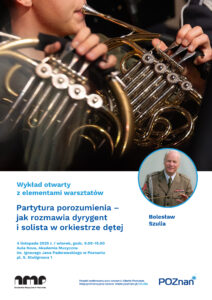 Wykład połączony będzie z warsztatami z Orkiestrą Dętą Akademii Muzycznej i muzykami Orkiestry Reprezentacyjnej Sił Powietrznych.