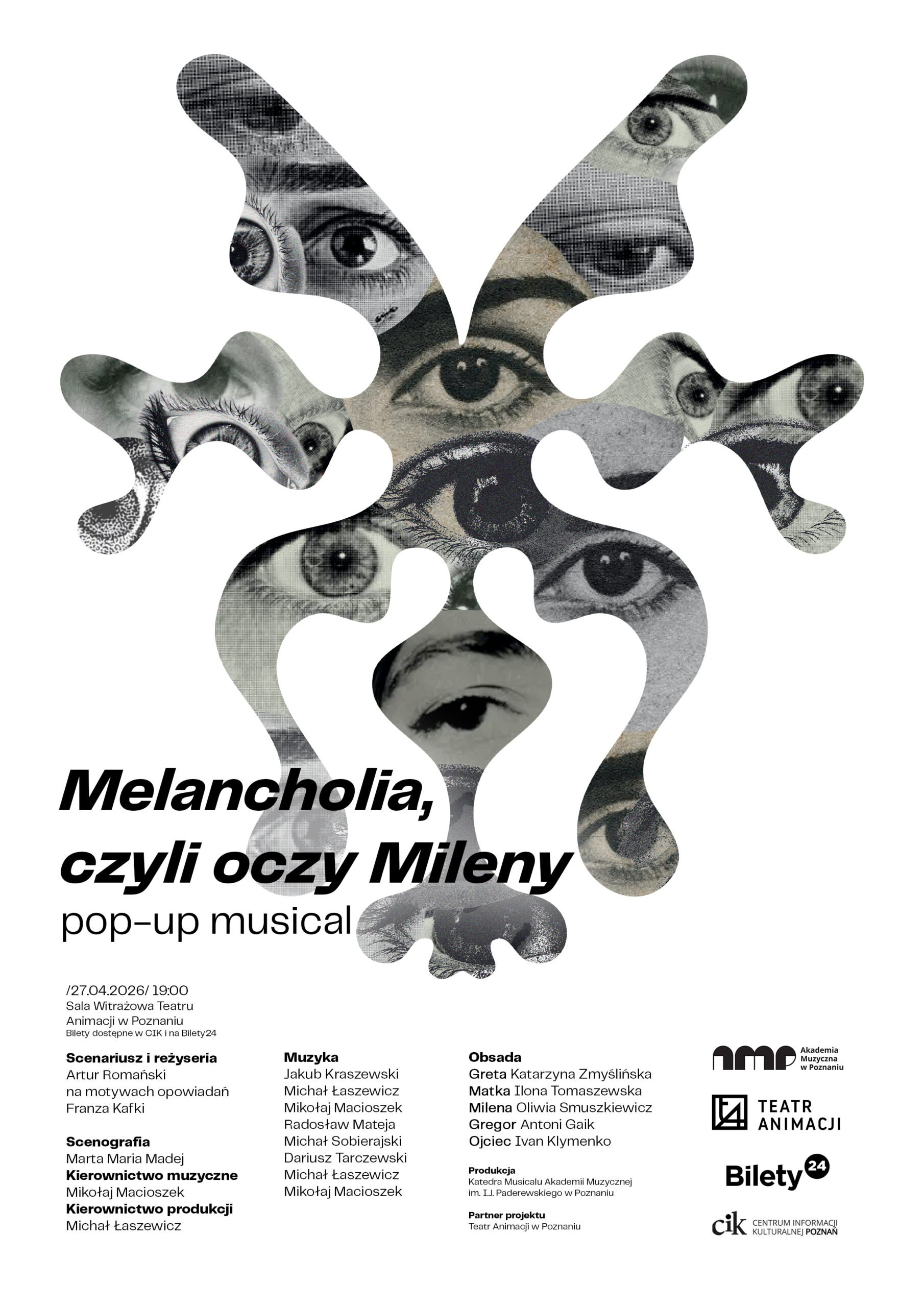 O czym jest Melancholia, czyli oczy Mileny? To elektryzujący pop-up musical – dynamiczna, muzyczna wizja kafkowskiej Przemiany. Spektakl porzuca ramy tradycyjnej inscenizacji, by uderzyć w widza intensywnością emocji i tempa. Wkrocz do klaustrofobicznego świata Gregora Samsy, którego nagła, potworna metamorfoza, burzy fasadę rodzinnego porządku i zmusza bliskich do walki o pieniądze i godność.