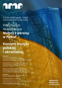 We wtorek 14 kwietnia 2026 r. w Sali Prezydenckiej poznańskiej Akademii Muzycznej im. I.J. Paderewskiego odbędzie się XVIII Forum Akademickie – Wojenne losy kultury muzycznej Ukrainy. Studium przetrwania, realizowane w ramach wspólnego projektu pt. Muzycy z Ukrainy w Polsce.