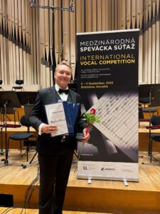 Wojciech Kowalski – student IV roku studiów I stopnia w klasie śpiewu dra Sebastiana Szumskiego zajął I MIEJSCE, zdobył NAGRODĘ SPECJALNĄ za najlepszą interpretacje utworu słowackiego kompozytora oraz NAGRODĘ SPECJALNĄ Jiříego Habarta, Głównego Dyrygenta Filharmonii Hradec Králové (Czechy) na I Międzynarodowym Konkursie Wokalnym w Bratysławie (Bratysława, Słowacja 5-11.09.2025). Przy fortepianie Wojciechowi Kowalskiemu towarzyszył Szymon Chorobiński.
